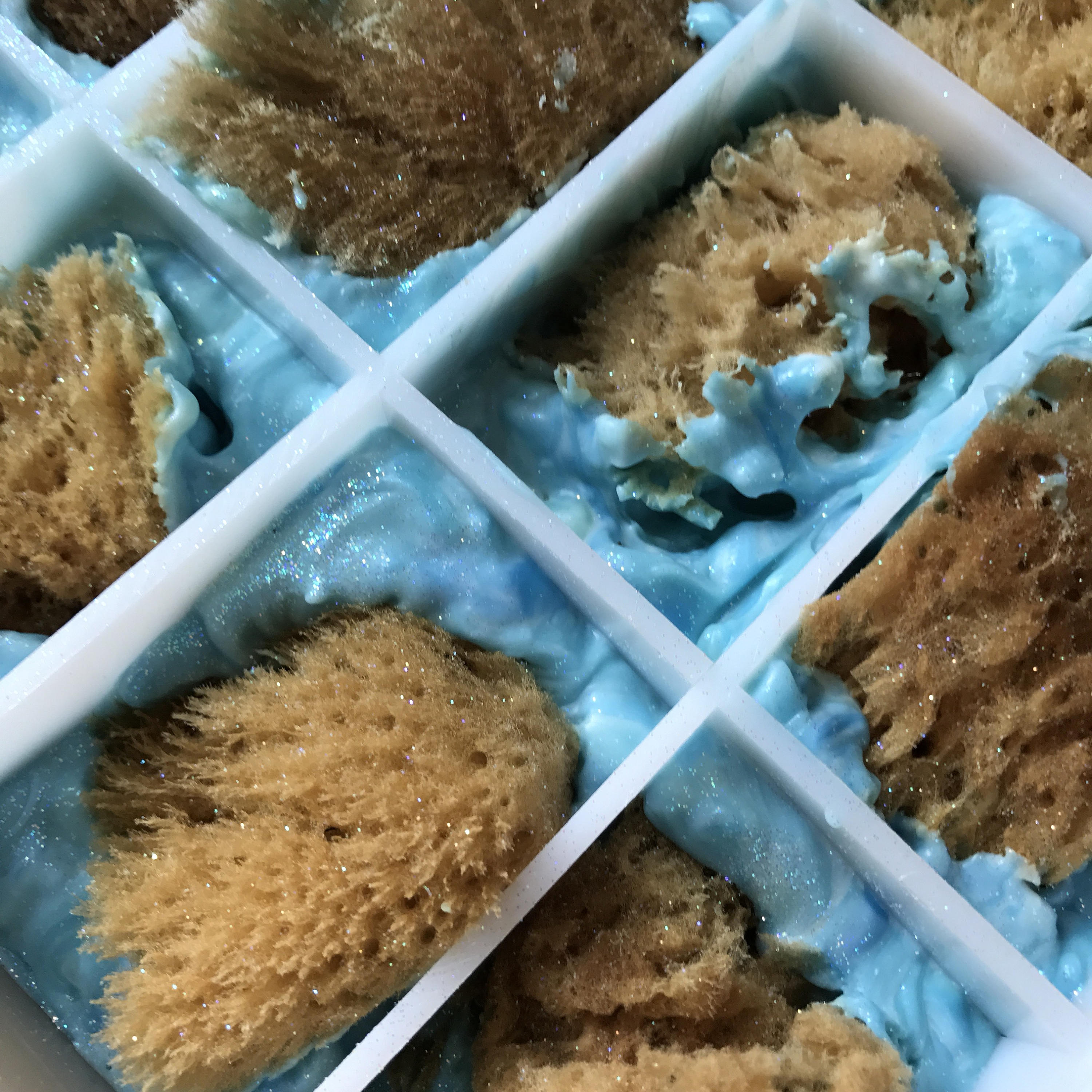 INGREDIENTS: Pure olive oil, lard, coconut oil, water, lye, phthalate free fragrance oil, mica, cosmetic grade glitter, sea sponge.