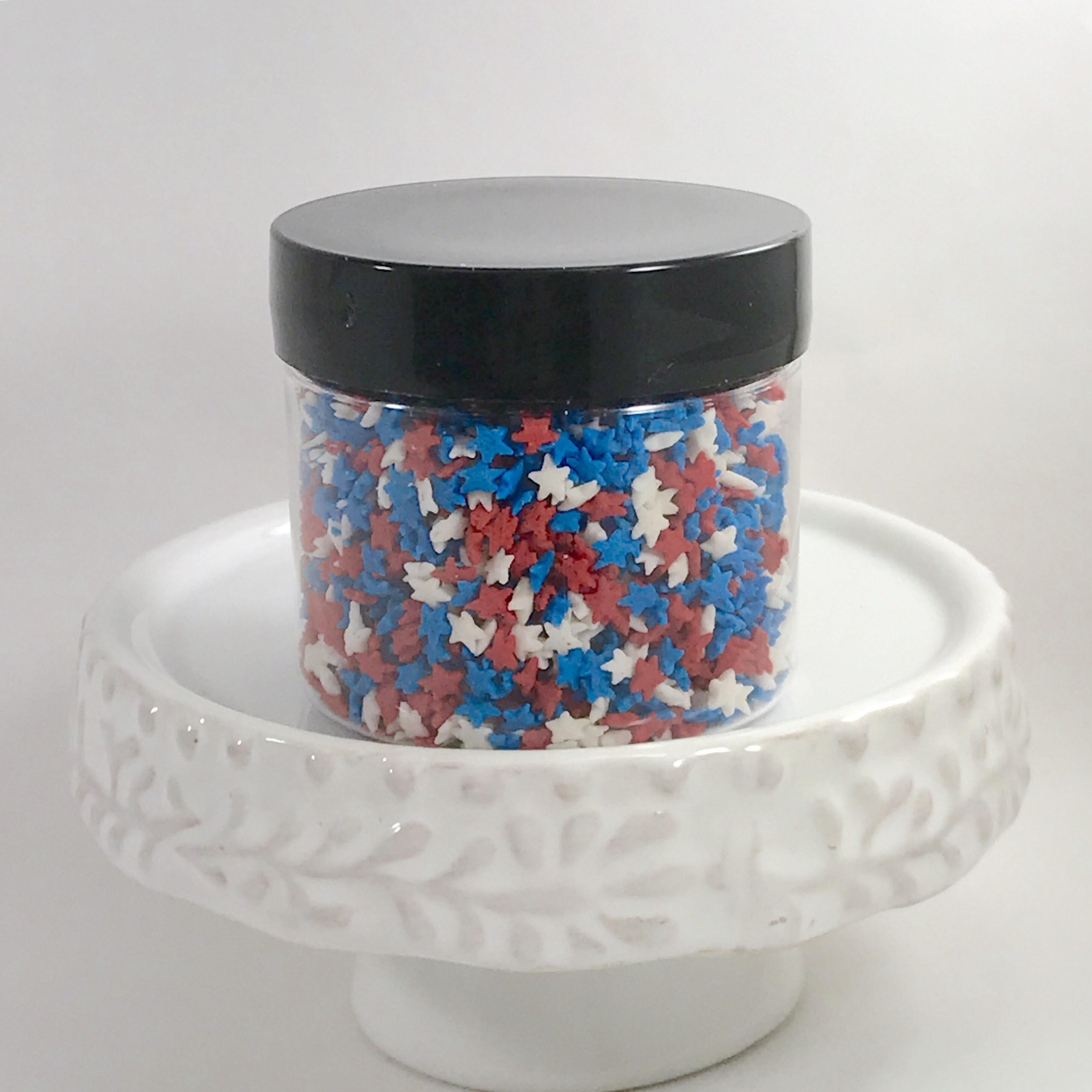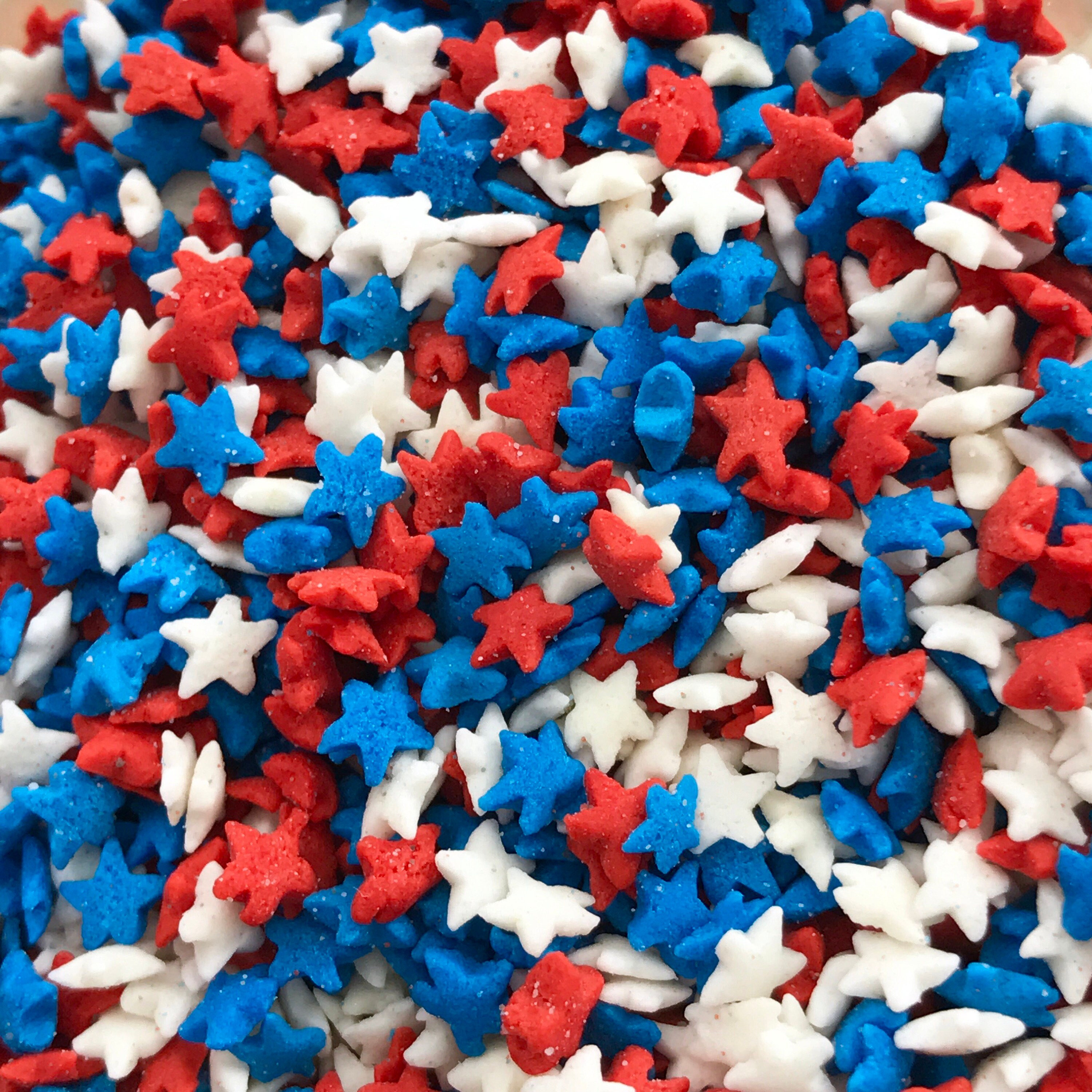 These are teeny, tiny stars-about 1/8" in size in red, white & blue. They make adorable patriotic decoration for your products or cakes & cookies!
