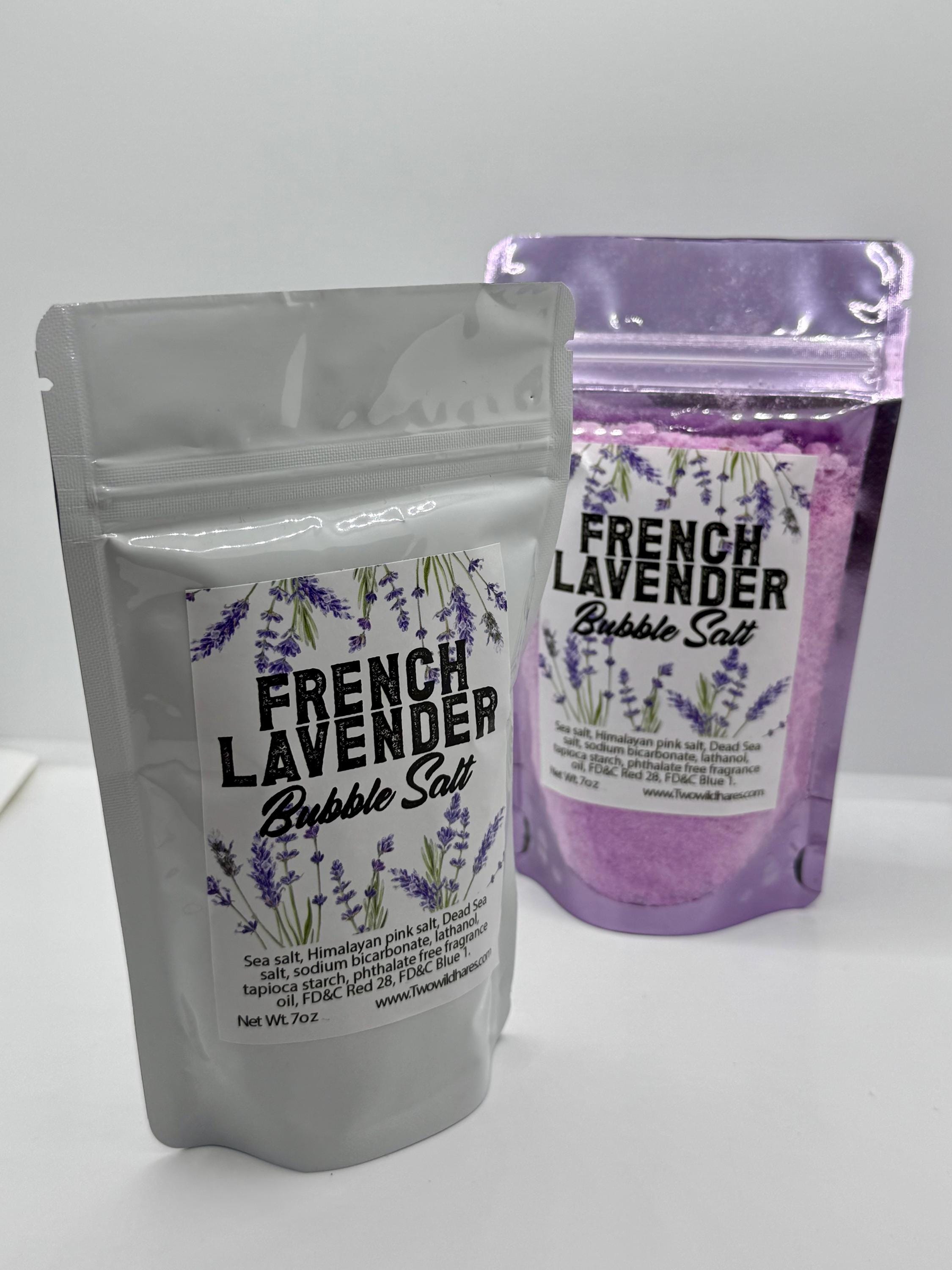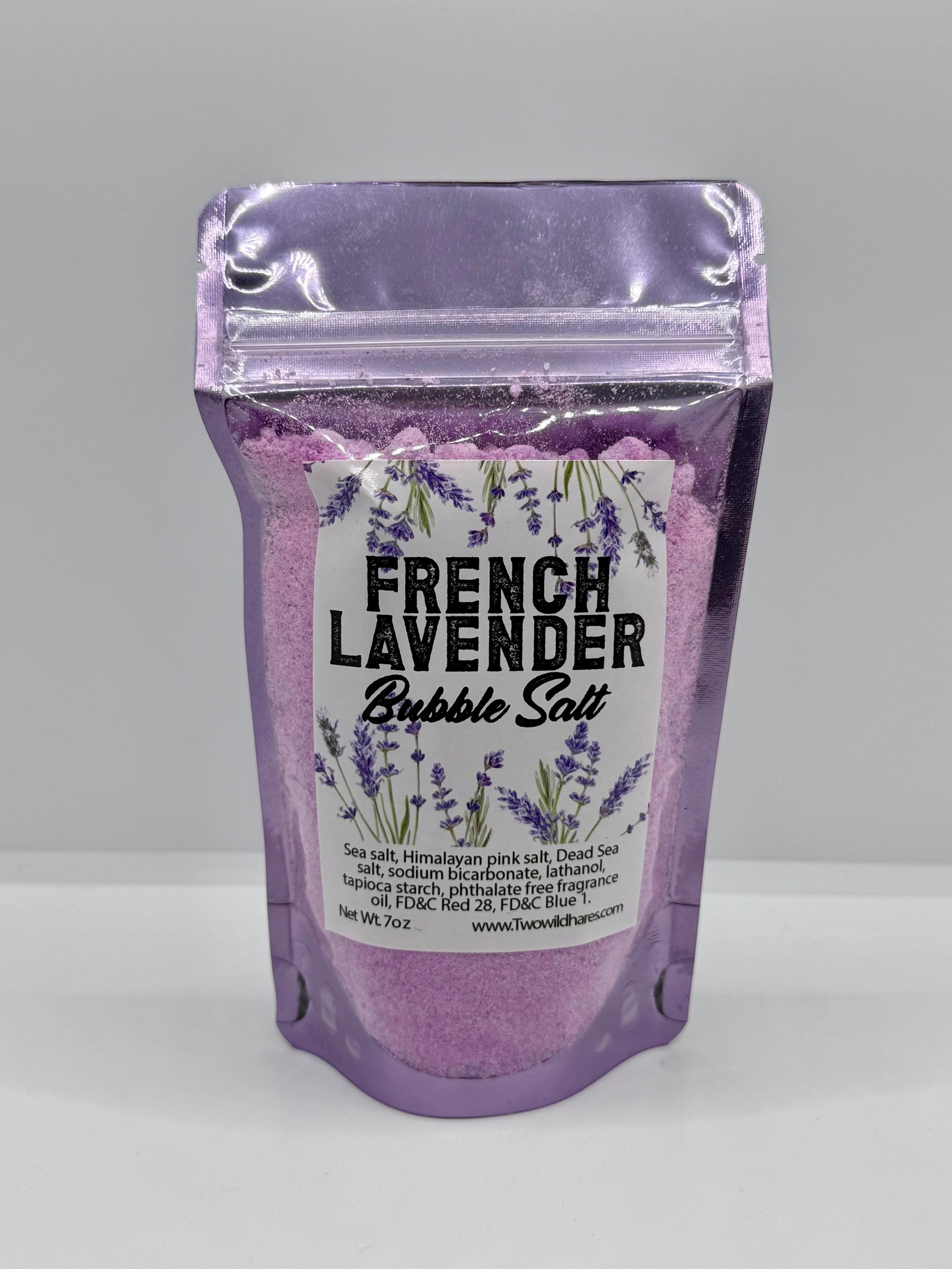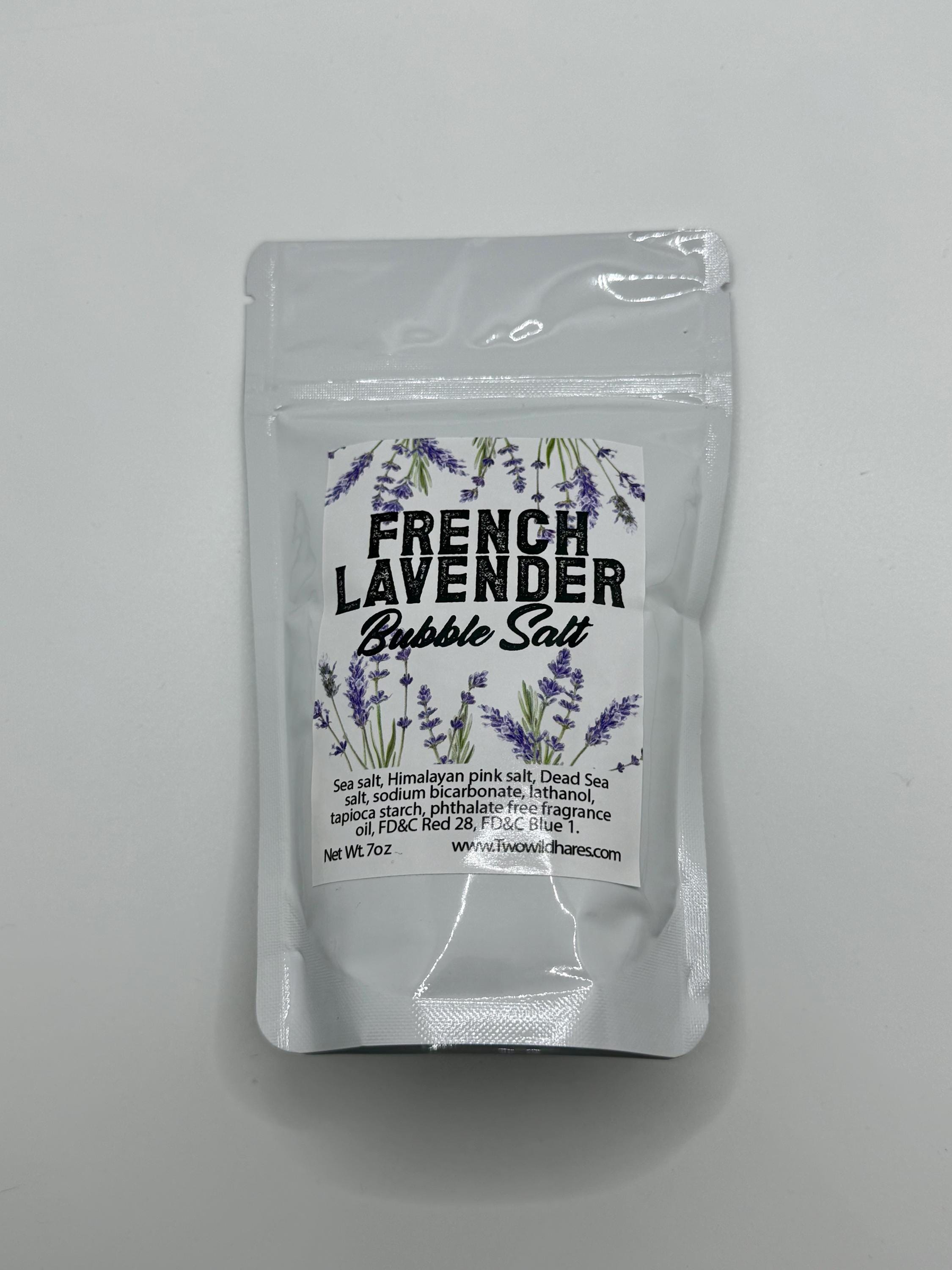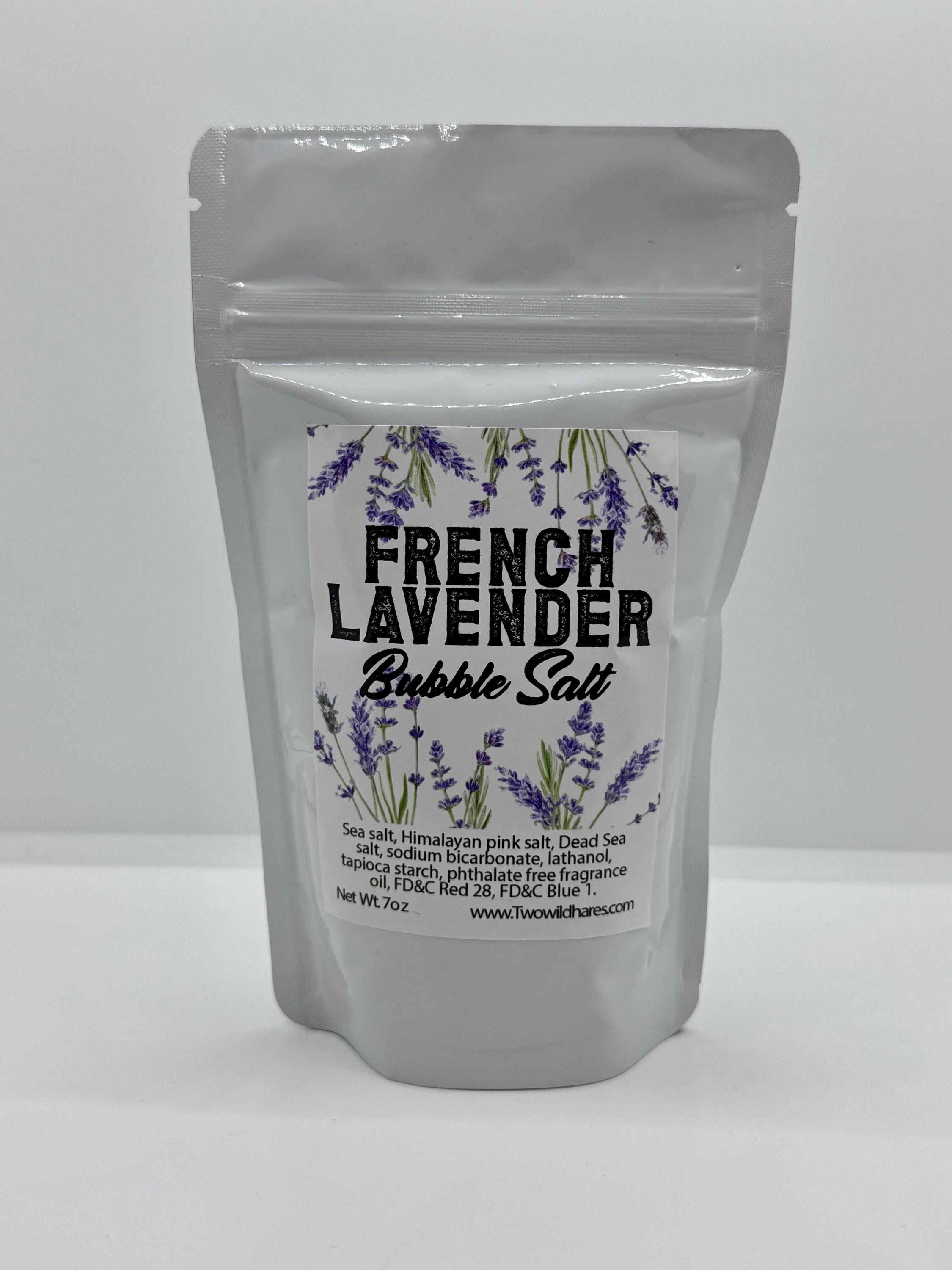 FRENCH LAVENDER Bubbble salt is a bath salt and bubble bath in one product that smells like a lavender field. Sit back, relax and enjoy your bath! This bag is 7 oz and it's enough for 2 baths!