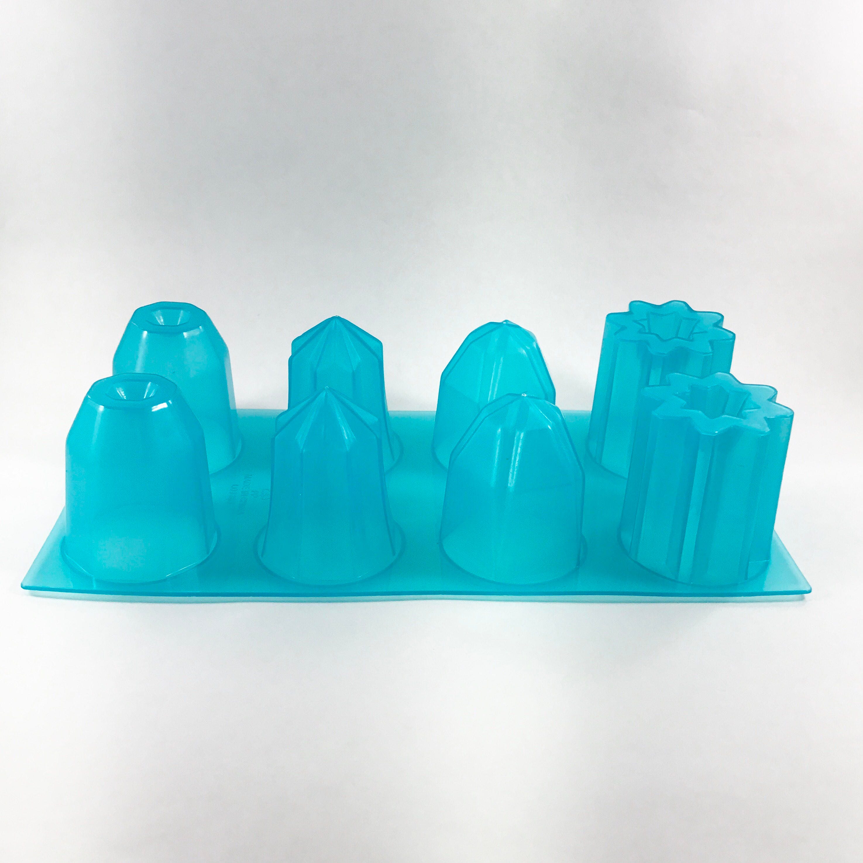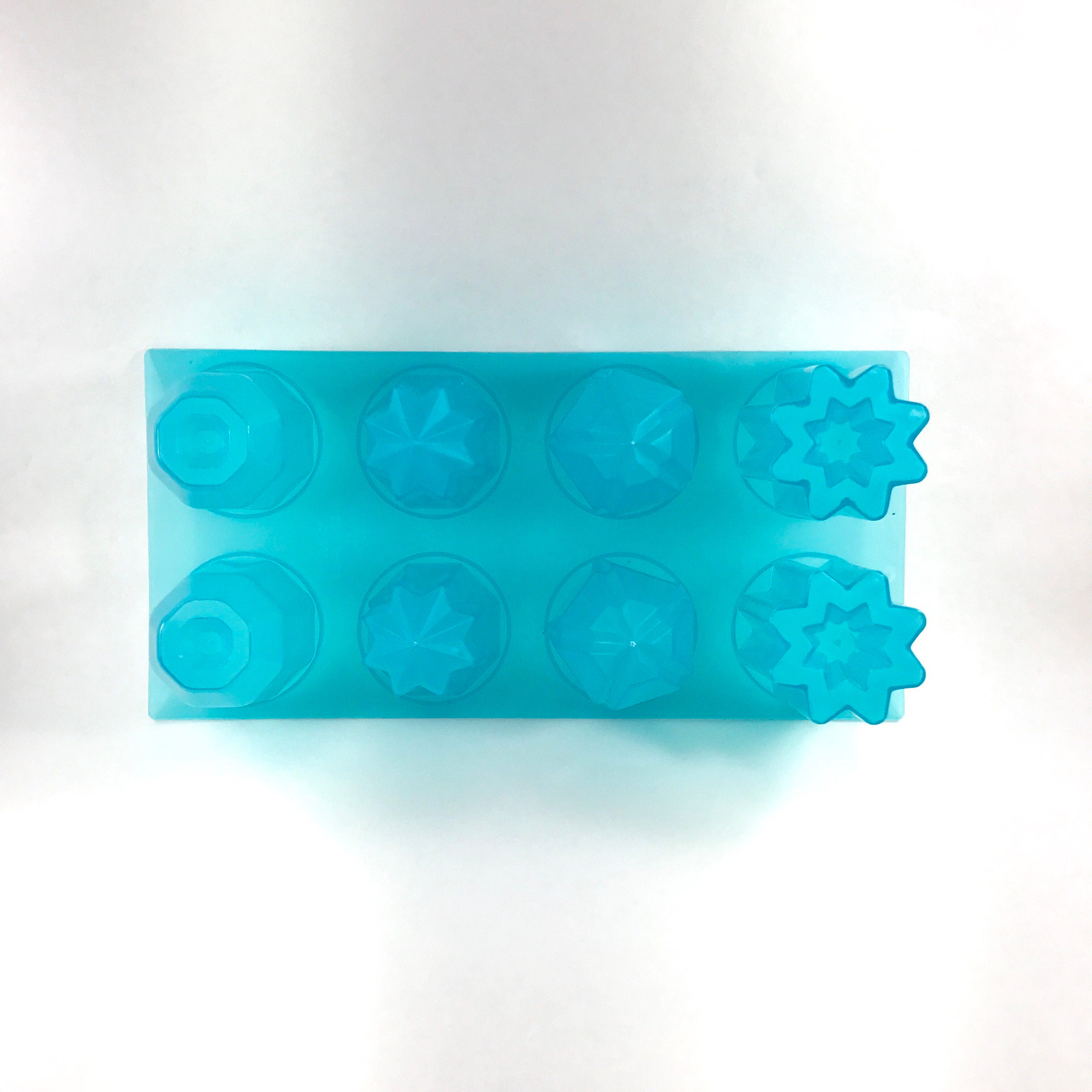 This mold is 4 jewel shapes, 2 of each shape. We think it is a cute mold for making specialty bath bombs in. Pack the mold, flip it over and smack the cavities with a rubber spatula (not something hard or you'll crack it.) The cavities are tapered for unmolding.