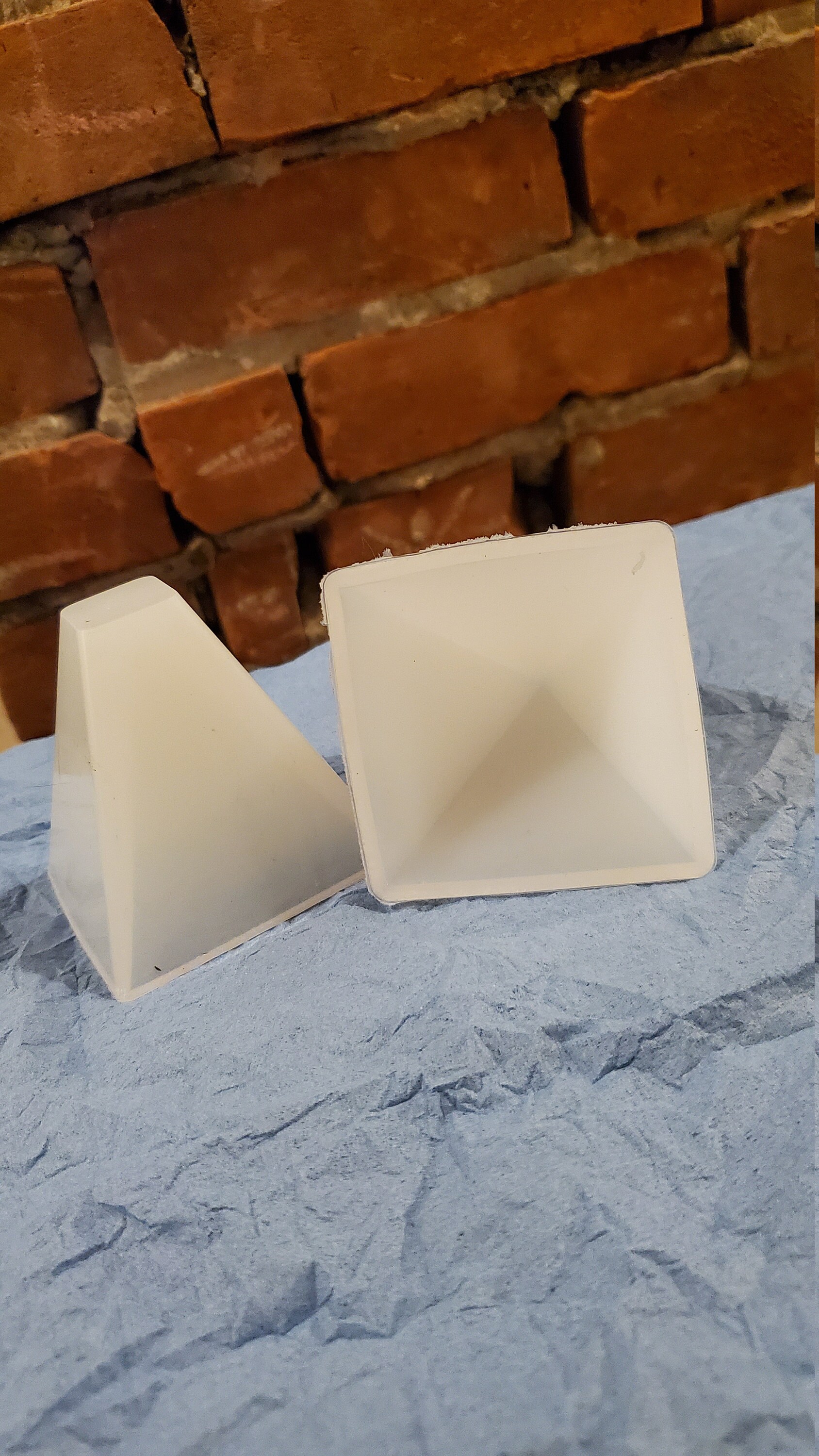 2.5" PYRAMID is a just what it sounds like- it's a perfect pyramid mold that is about 2.5" in all directions. The mold is made to be able to stand up on the tip for filling, but it does have a pointy tip inside like a traditional pyramid, not a flat tip. You can use this mold for soap, wax, resin, lotion bars or soap jellies & more!